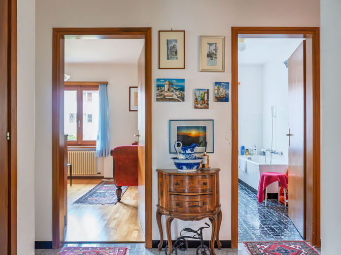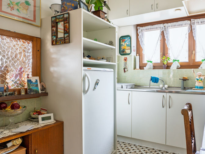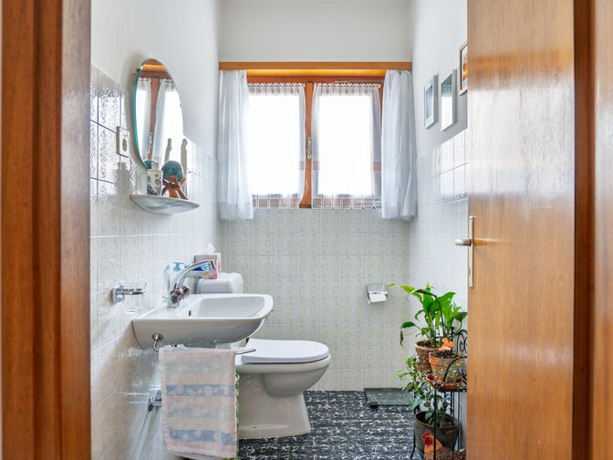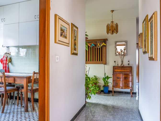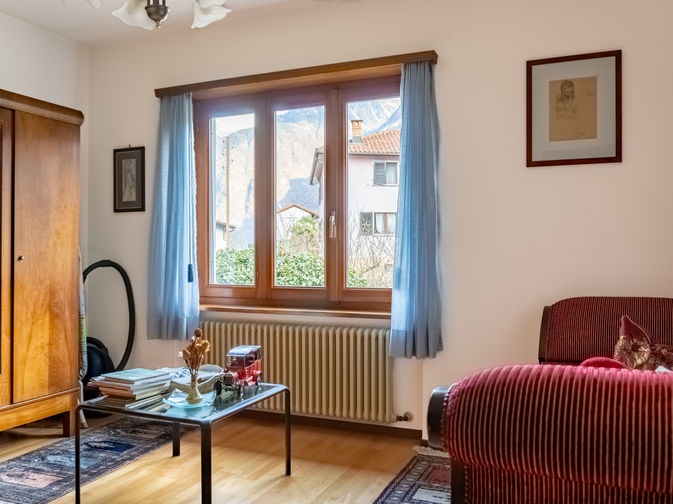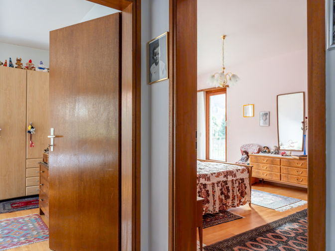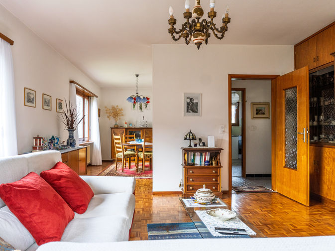 - Piano Terra (96.17 mq potenziali - Altezza 2.40 m): Grazie all'altezza di 2.40 m, questo livello è ideale per essere trasformato in un secondo appartamento indipendente. Attualmente ospita un grottino, cantine e un garage box. Sfruttando l'ampio spazio esterno per i posteggi, l'attuale garage può essere convertito in superficie abitativa.