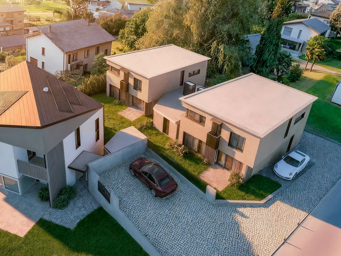 Situate in uno dei quartieri più ricercati di Roveredo, queste abitazioni uniscono un design contemporaneo minimalista a spazi aperti e luminosi, con ampie vetrate che collegano armoniosamente gli interni accoglienti ai giardini privati.